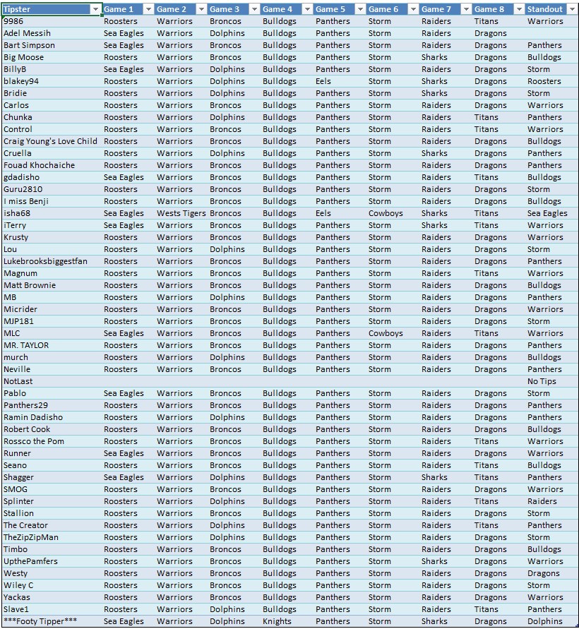 I have had the commentators curse wrapping everyone for submitting their tips each week.