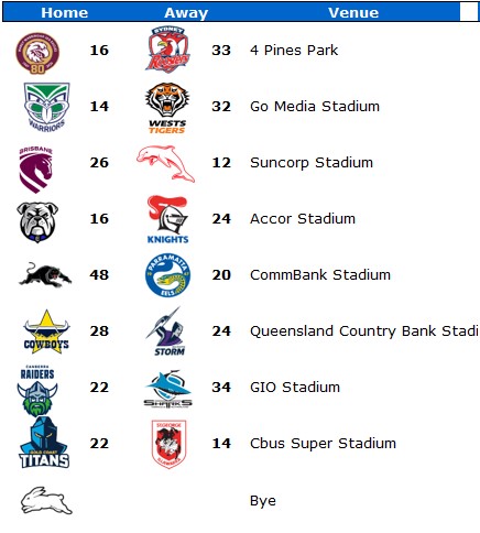 The unbeaten Wahs looked unbeatable until the depleted Wests Tigers crossed the ditch into Warrior land. Only tipster isha68 foresaw this. While isha68 (again) and MLC were the only ones to tip the Cowboys over the Storm.