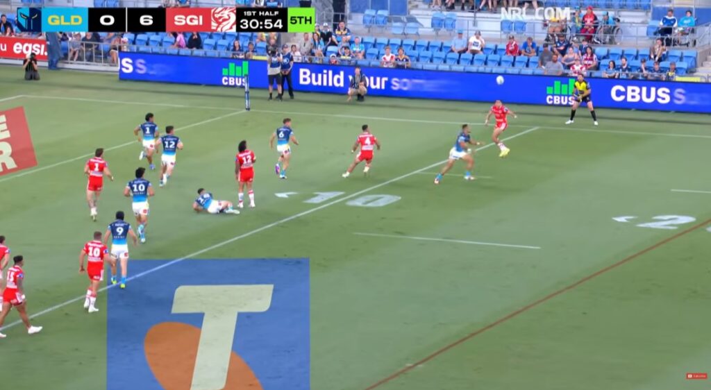 This game was ugly. The Dragons had all the ball and territory, but the Titans still looked more likely to score after their 1st from an interception.